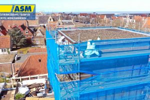 Onder leiding en begeleiding van Buro Erfdiel mocht ASM BV een luxueus appartement saneren bovenop een monumentaal pand te Harlingen. Deze geweldige locatie te boeken via www.hetdakhuis.nl geeft een prachtig panoramisch uitzicht over Harlingen. Het asbest zat achter de houten buitenschil, deze hebben wij dan ook samen met de asbestbeplating verwijderd en afgevoerd. Zoals je op de foto’s ziet moest dit project op grote hoogte worden uitgevoerd. Dit soort bijzondere klussen vereisen dan ook veel geduld, kennis en expertise om ze zo zorgvuldig en veilig mogelijk uit te voeren. Vaardigheden die ASM BV wel zijn toevertrouwd.